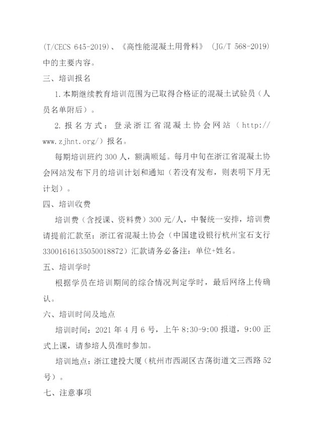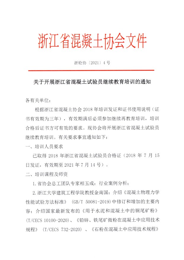 转发关于开展浙江省混凝土试验员继续教育培训的通知